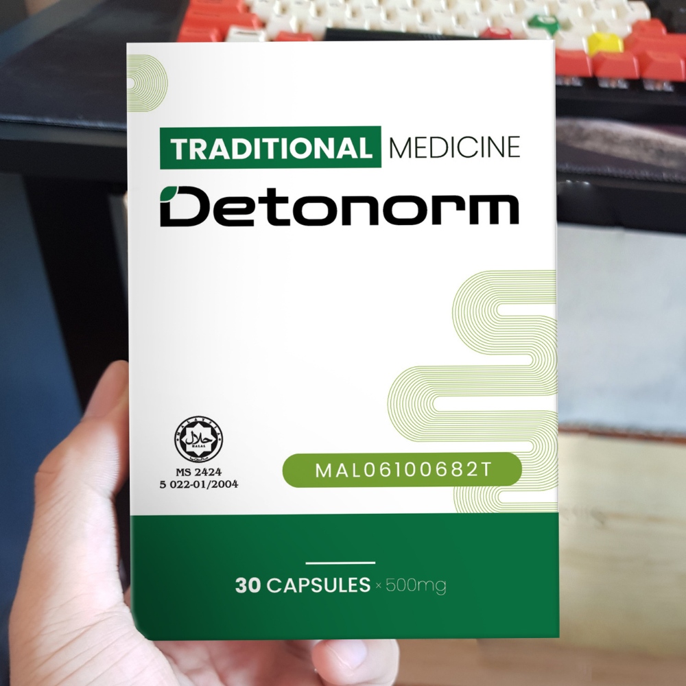 Detonorm diformulasikan sebagai suplemen untuk menyokong kebersihan dalaman dan keseimbangan sistem pencernaan.