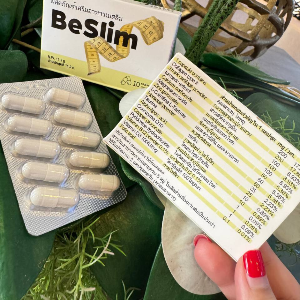BeSlim เป็นผลิตภัณฑ์เสริมอาหารชนิดแคปซูลที่ออกแบบมาเพื่อสนับสนุนการควบคุมน้ำหนักและดูแลรูปร่าง เหมาะสำหรับผู้ที่ต้องการแนวทางดูแลตนเองอย่างต่อเนื่อง ควรใช้ควบคู่กับการควบคุมอาหารและการออกกำลังกายเพื่อผลลัพธ์ที่สมดุล