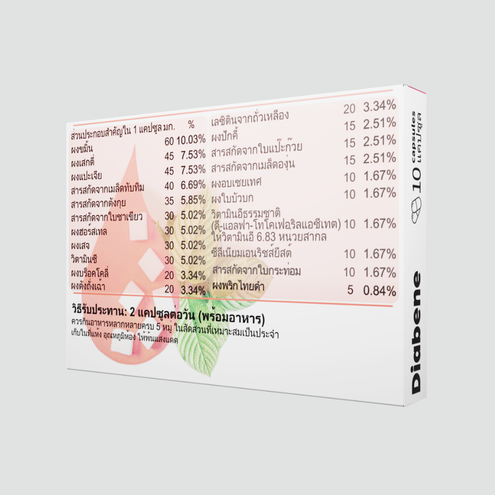 Diabene แคปซูลดูแลระดับน้ำตาล เพื่อสมดุลสุขภาพในชีวิตประจำวัน
