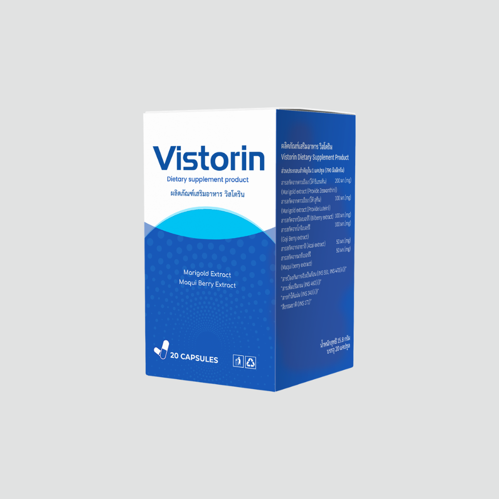 Vistorin เป็นผลิตภัณฑ์เสริมอาหารรูปแบบแคปซูลสำหรับดูแลสุขภาพดวงตา. สูตรได้รับการพัฒนาเพื่อสนับสนุนการทำงานของจอประสาทตาและลดความเมื่อยล้าของดวงตา. เหมาะสำหรับผู้ที่ต้องการดูแลสายตาอย่างสม่ำเสมอในชีวิตประจำวัน.